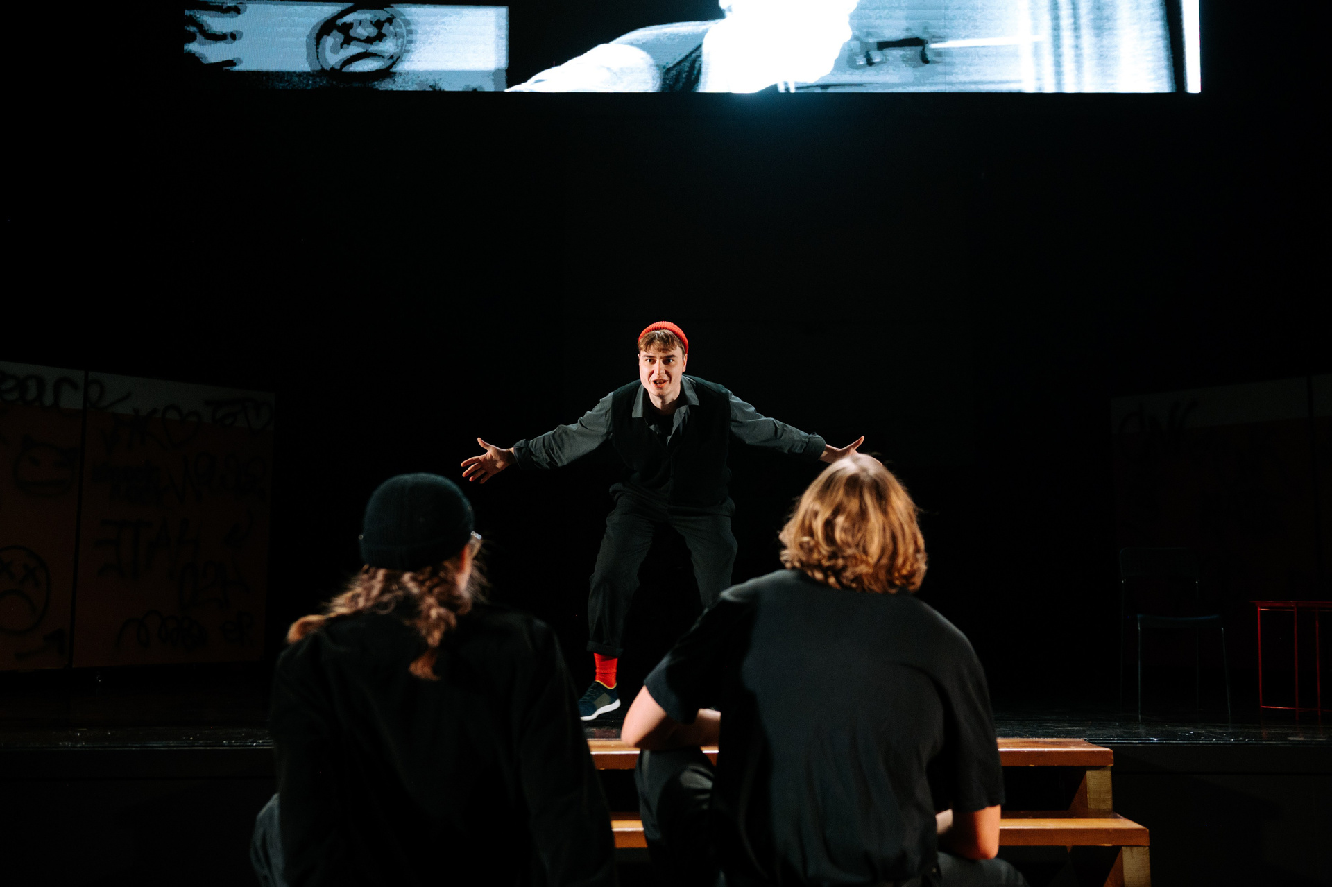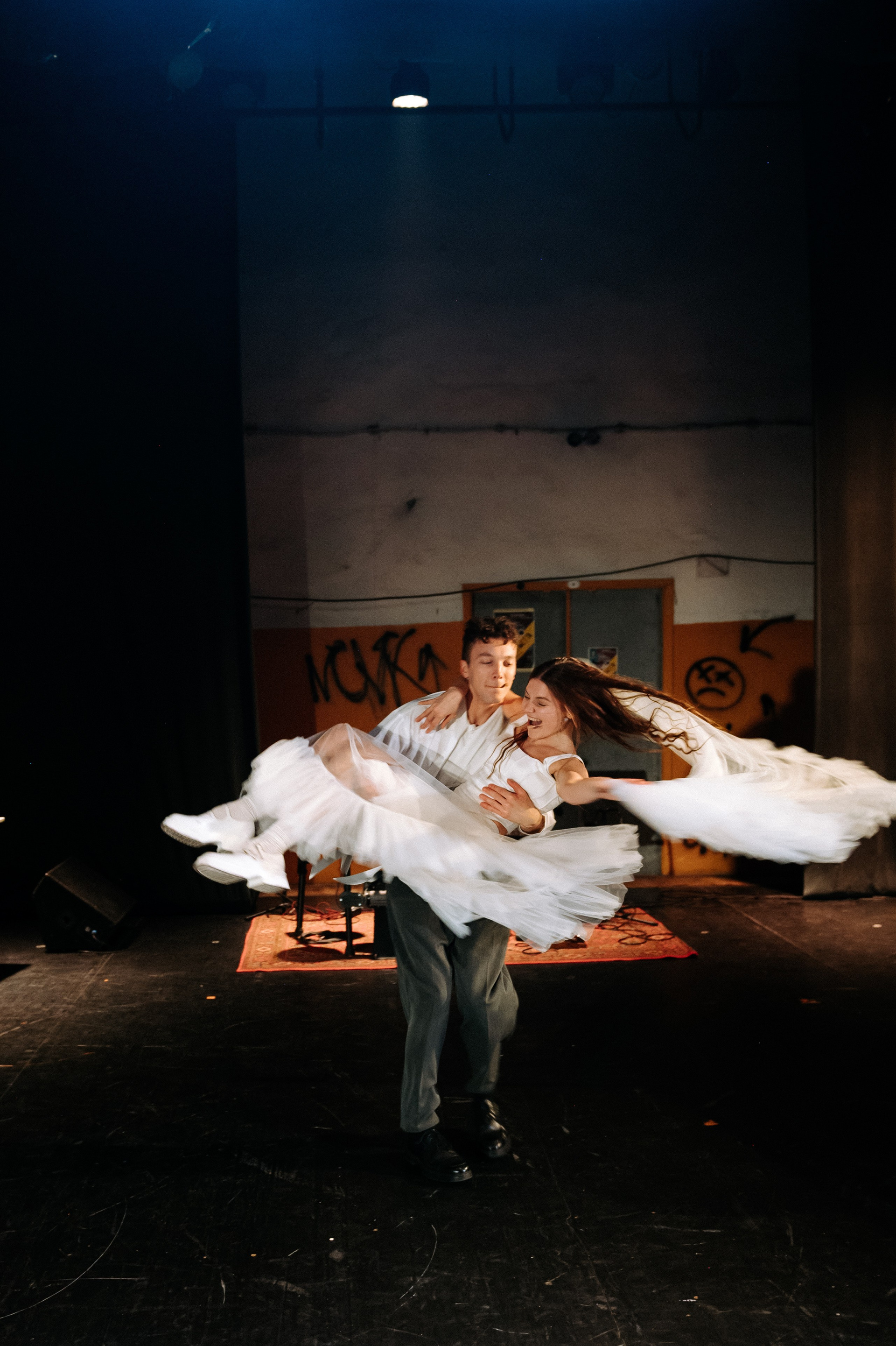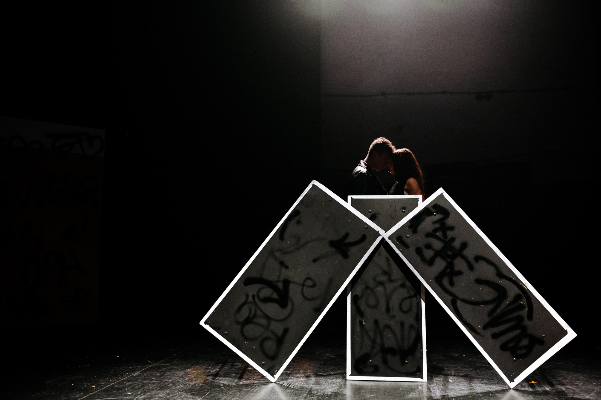 Действие спектакля перенесено в современный город, явно провинциальный. Это город, где людям нечего делать, где эмоции находят выход в драках, город, чью серость «украшают» яркие граффити на стенах многоэтажек, город, в котором звучит вечная проблема отцов и детей. И, несмотря на все проблемы, здесь, словно вспышка, рождается настоящее чувство — любовь!